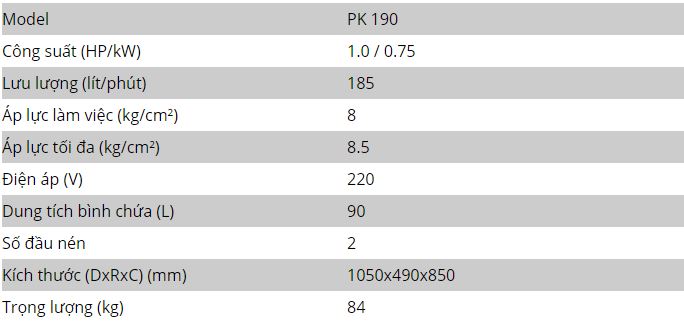 - Thông số kỹ thuật của máy nén khí piston Puma 1HP Đài Loan