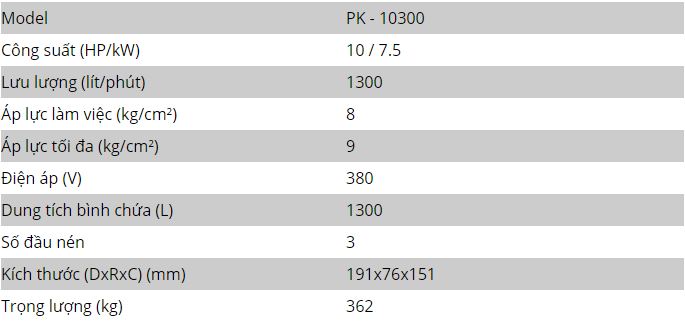 - Thông số kỹ thuật của máy nén khí Puma Trung Quốc 10HP