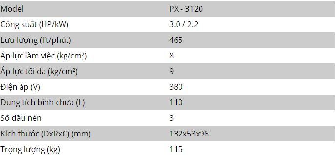 - Thông số kỹ thuật của máy nén khí Puma Trung Quốc 3HP
