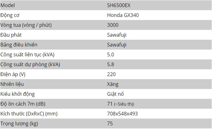 Máy phát điện Elemax SH6500EX đặc điểm nổi bật: