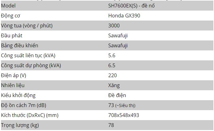 Máy phát điện Elemax SH7600EX(S) đề nổ đặc điểm nổi bật: