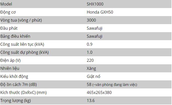 4. Máy phát điện SHX1000 với mức tiêu hao nhiên liệu thấp giúp người dùng tiết kiệm được chi phí trong quá trình sử dụng.