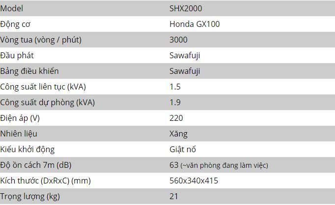 4. Máy phát điện SHX2000 với mức tiêu hao nhiên liệu thấp giúp người dùng tiết kiệm được chi phí trong quá trình sử dụng.