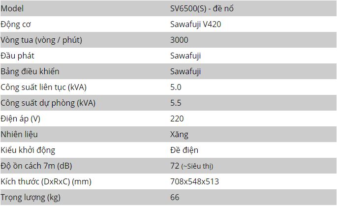 - Công suất dự phòng: 5.5 Kva